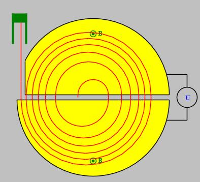 Lors du passage entre les plaques du DEE, ces charges électriques sont attirées ou repoussées suivant la charge existant sur les plaques. Les charges qui arrivent au bon moment par rapport au rythme de changement de signe des plaques vont donc etre accélérées. Puis décrire un demi cercle et arriver de l’autre coté du DEE. Si a nouveau la charge des plaques du DEE est dans le bon sens, la particule chargée est de nouveau accélérée, et en sortant du DEE décrit un cercle plus large, puis pénètre dans la première zone inter plaque du DEE, et si c’est au bon moment est a nouveau accélérée, etc ….